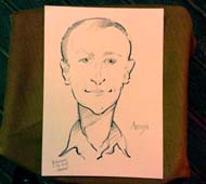 Я сторонник активного стиля профессионального шаржиста, т.е. в состоянии непринужденно подходить к каждому гостю, находить